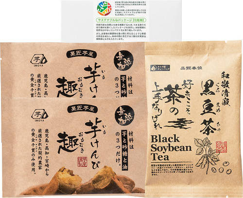 ●国産無添加芋けんぴ(黄金千貫使用)50g×2、国産高級黒豆茶テトラティーバッグ (2.5g×6P)×1