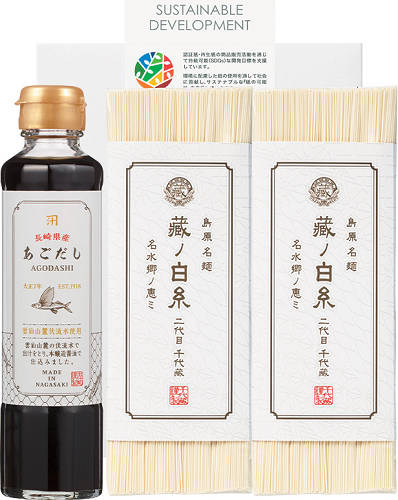 ●純手延べそうめん45g×8束、長崎県産のあごだしつゆ190ml×1