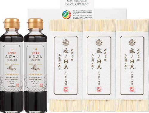 ●純手延べそうめん45g×12束、長崎県産のあごだしつゆ190ml×2