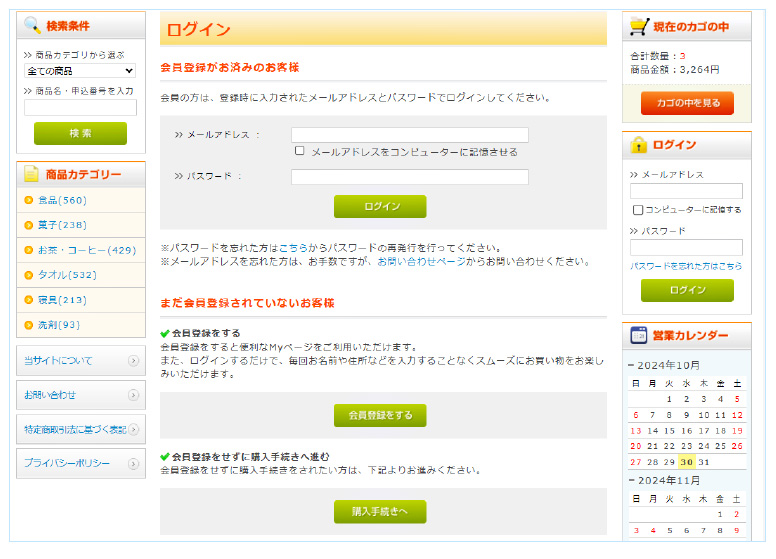 「購入手続きへ」ボタンを押したあとは「ログイン」画面が表示されます。