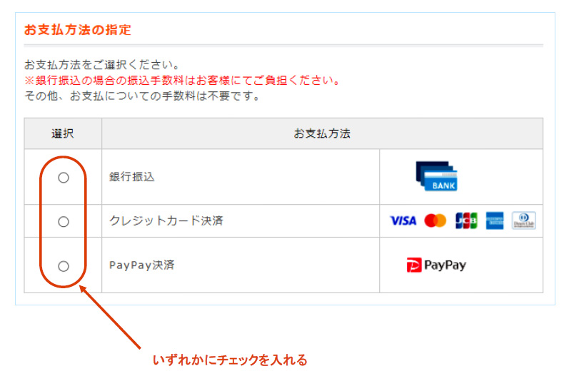 お支払方法は下記のとおり3種類をご用意しています。いずれかを選択してください。