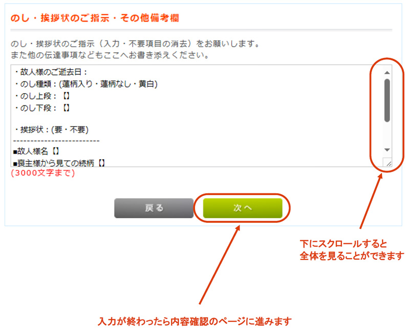 また当店宛にご注文に伴う伝達事項などあれば、その内容もこちらに入力をしてください。